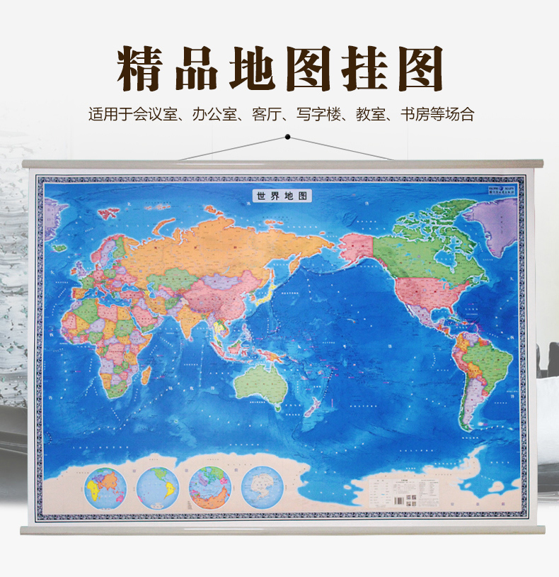 采用正轴圆柱投影 约1.4x1米 高清防水双面覆膜挂图 商务办公室家居专用挂图 社 世界地图挂图 哈尔滨地图出版 圆柱投影