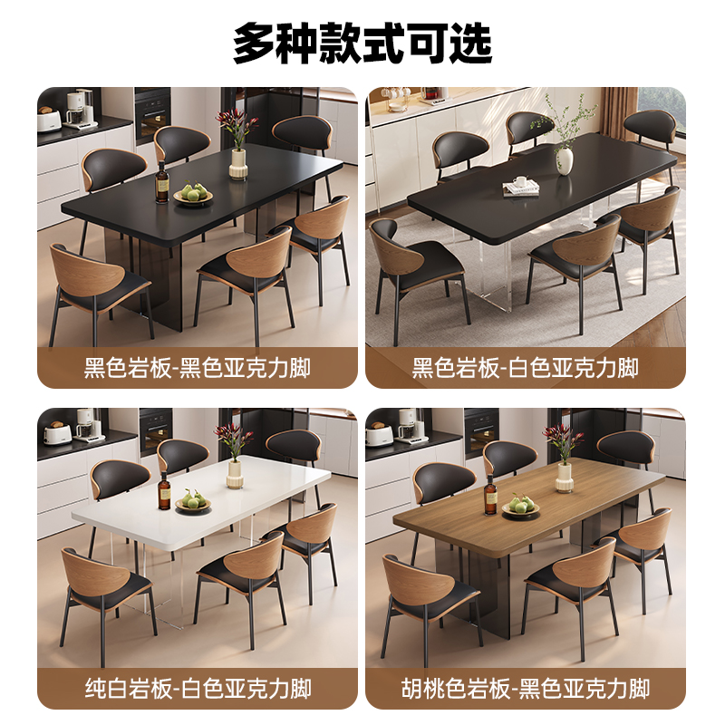 轻奢意式 极简小户型长方形家用复古风岩板餐桌椅组合实木吃饭桌子
