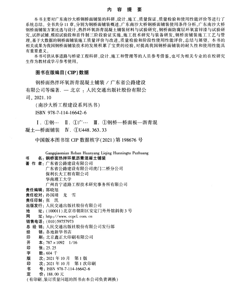 人民交通出版 吴玉刚 社9787114166426 钢桥面热拌环氧沥青混凝土铺装 南沙大桥工程建设系列丛书