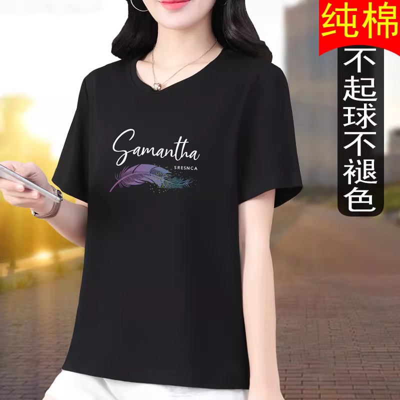 女装 纯棉柔软t恤女短袖 大码 2024年新款 宽松加肥胖mm内搭上衣 夏季