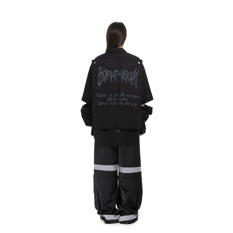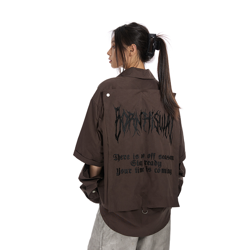 潮牌纯棉美式 女春秋款 宽松高级设计感上衣外套 衬衫 BTW可拆卸长袖