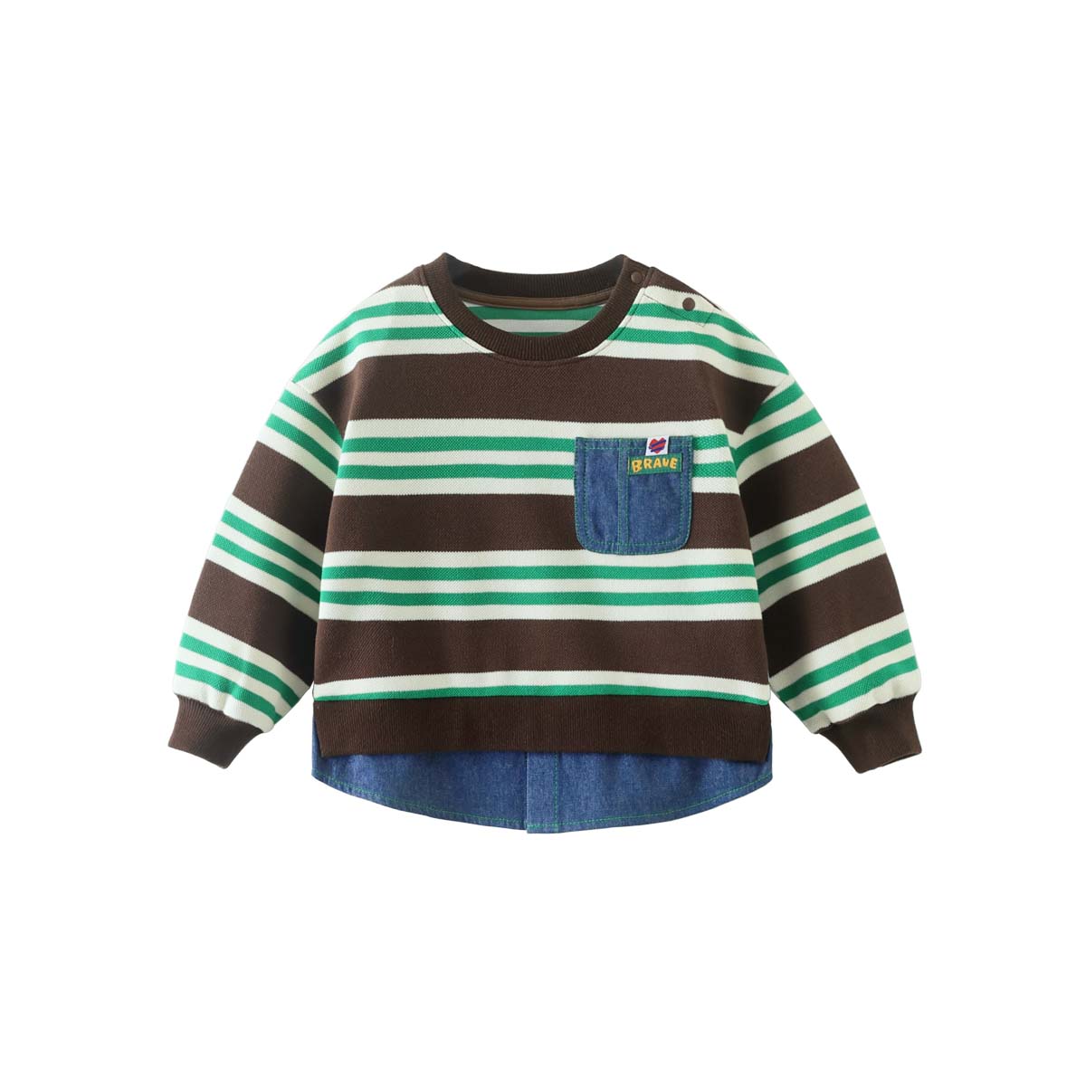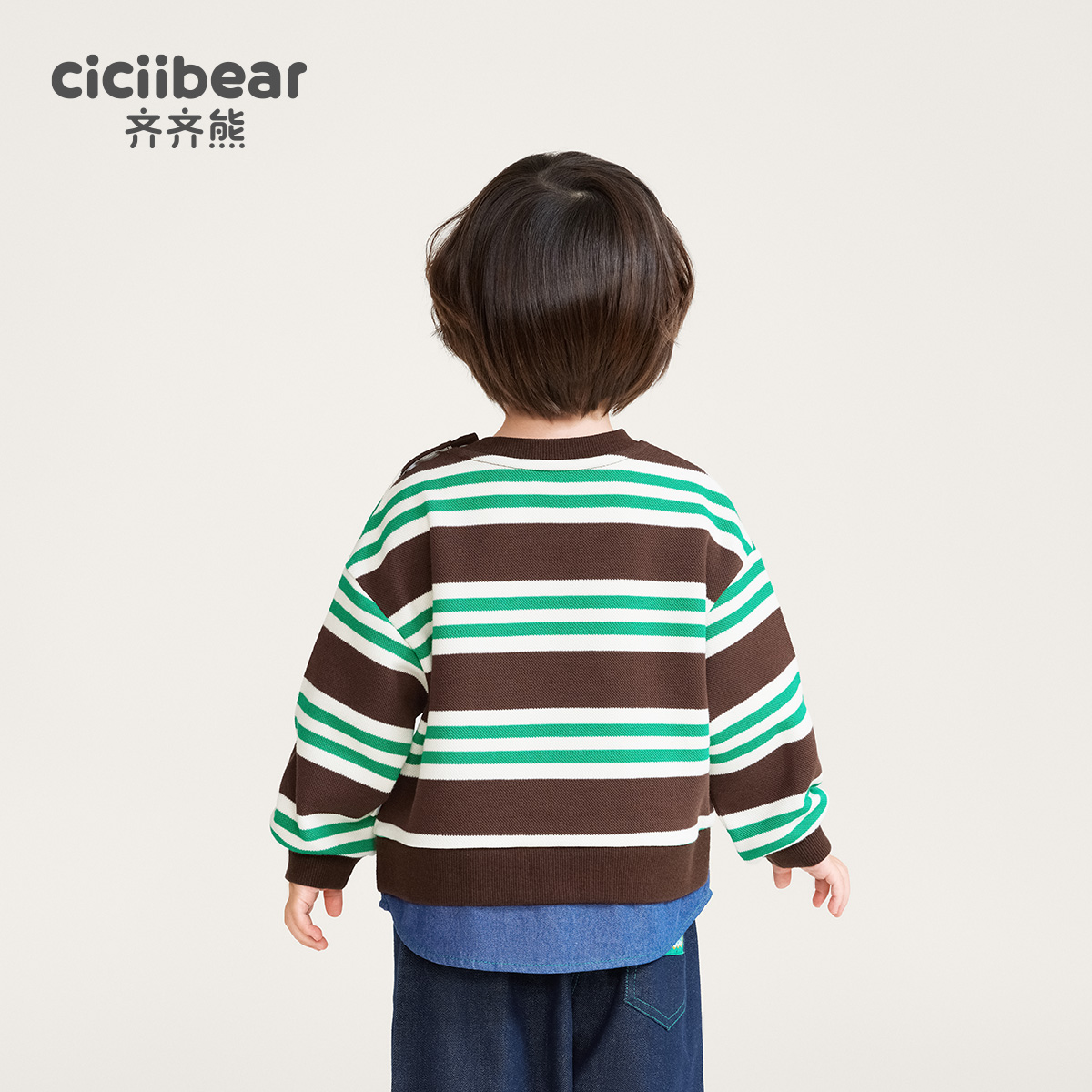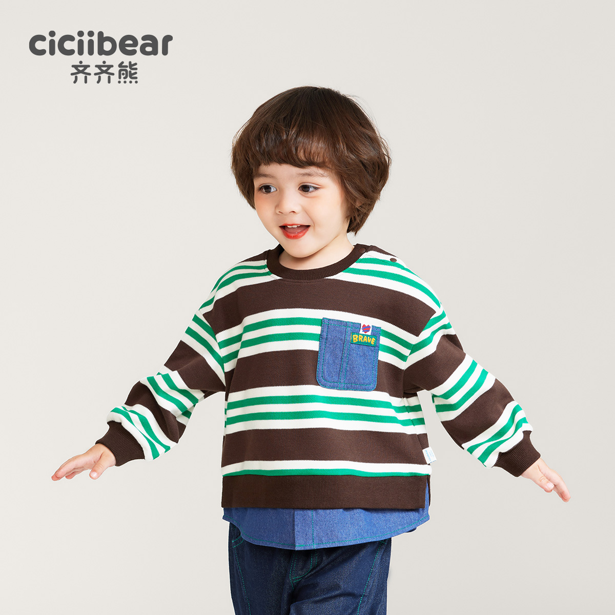 秋季 齐齐熊男童圆领卫衣儿童条纹T恤宝宝假两件休闲秋装 婴儿长袖