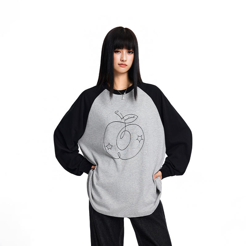 圆领情侣上衣学院风长袖 T恤新款 苹果印花插肩袖 Achock官方店