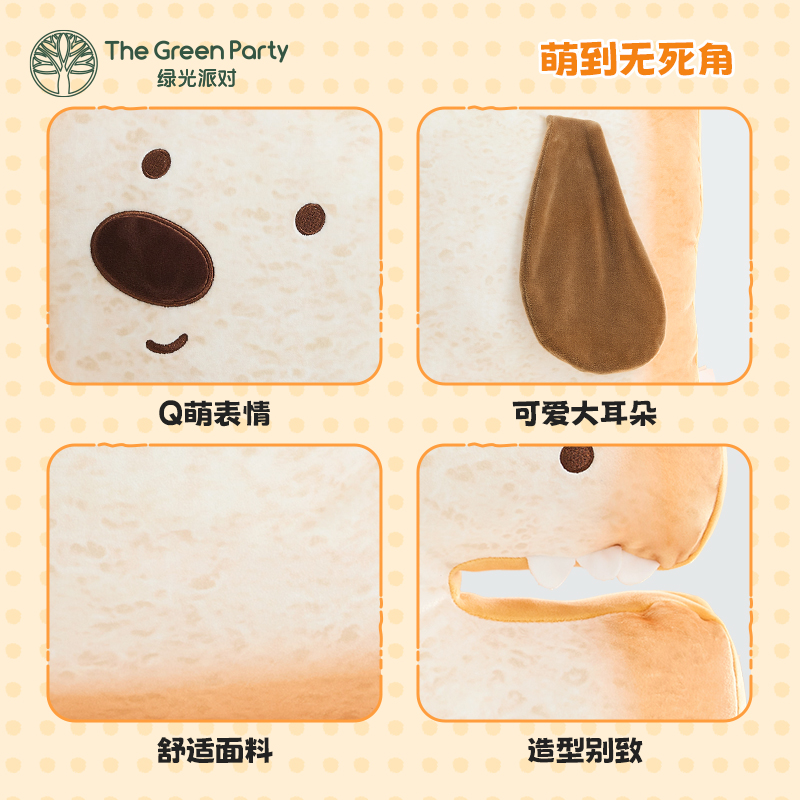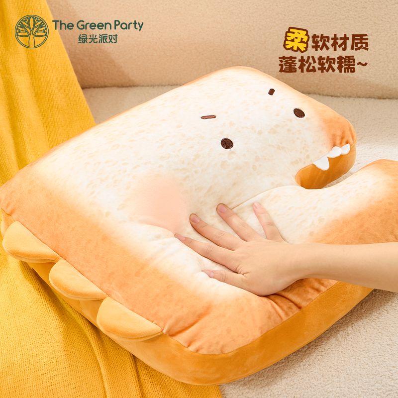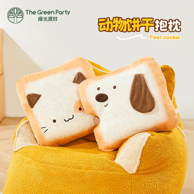 TheGreenParty面包小狗睡觉抱枕靠垫毛绒玩具床头靠枕办公室腰枕