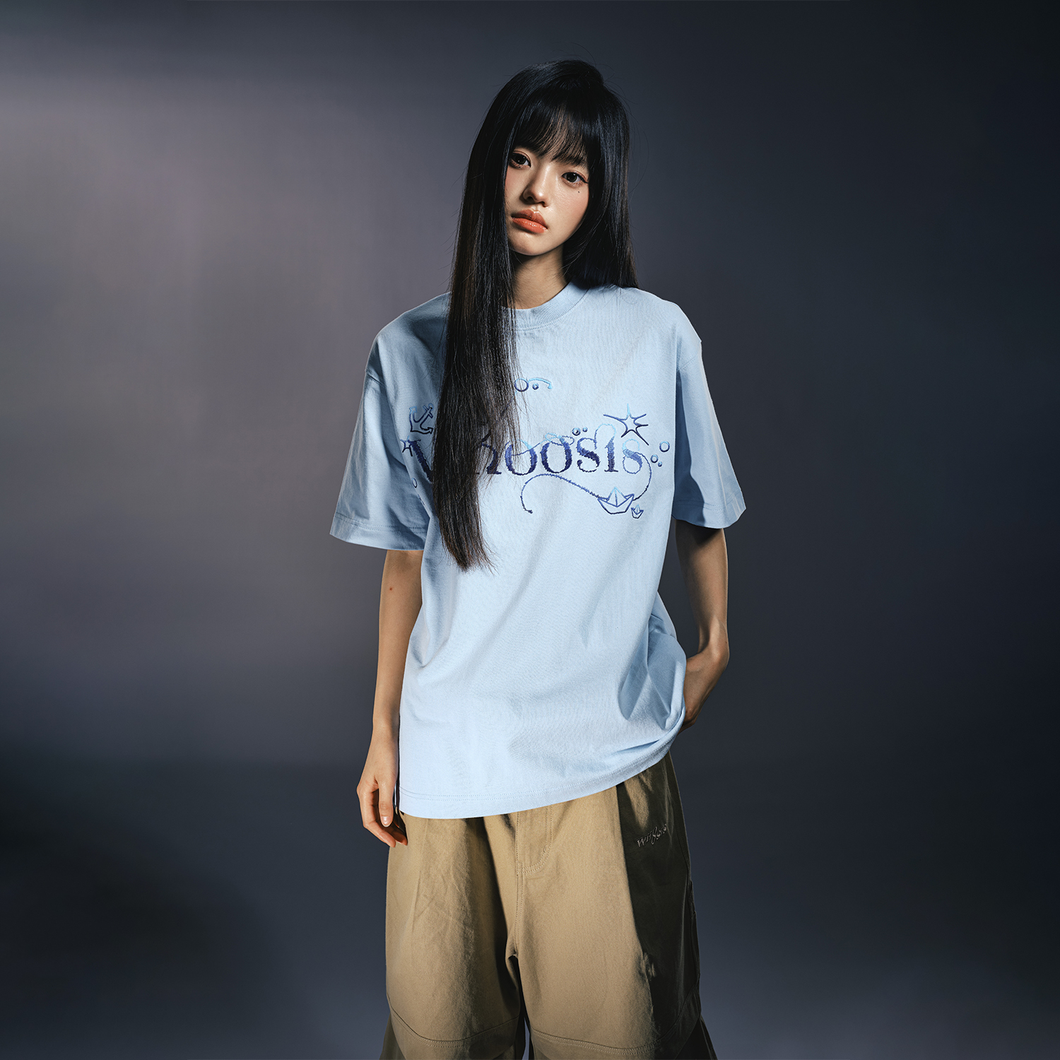 新品 WHOOSIS T恤夏季 浪漫许愿瓶渐变刺绣短袖 情侣男女 不知其名