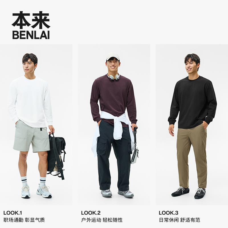 新款 本来BENLAI男士 2025秋季 T恤衫 打底上衣BRM450007 凉感抗菌长袖