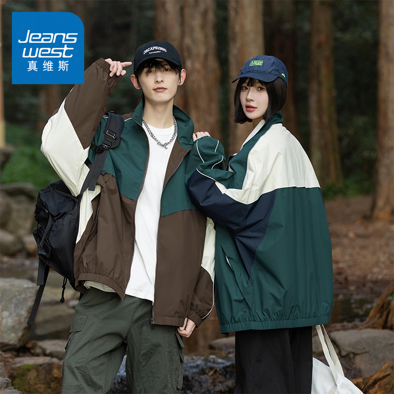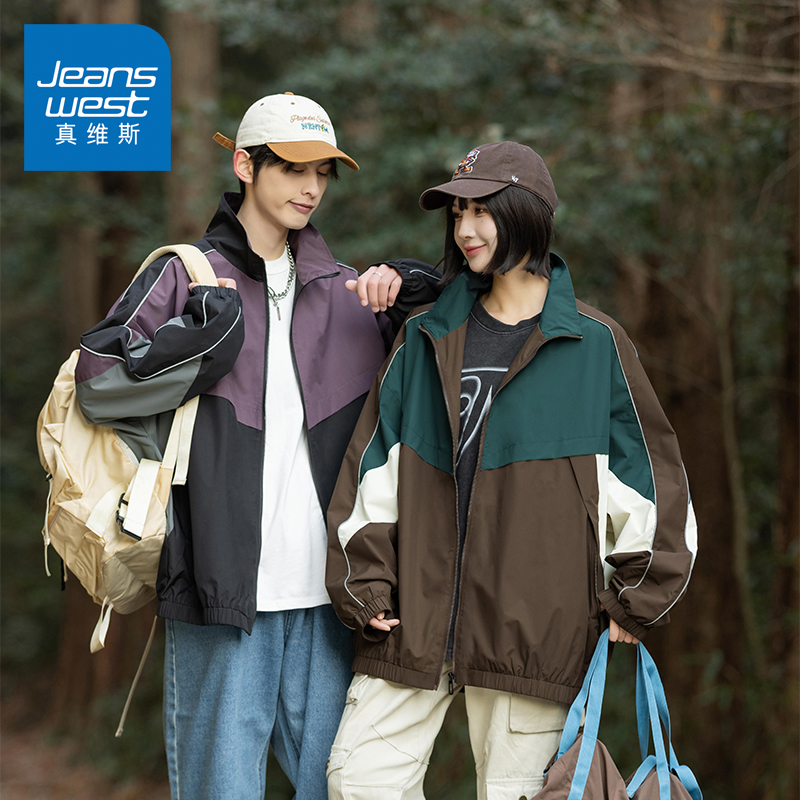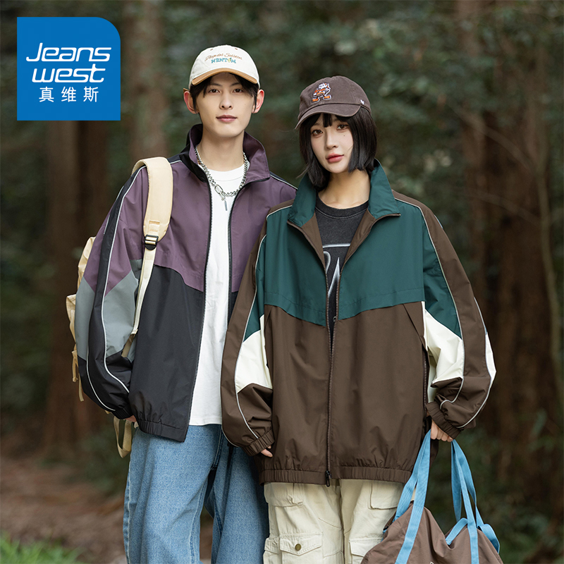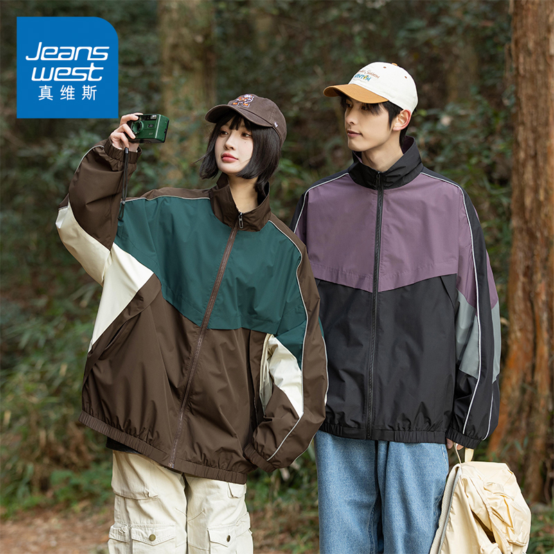 立领夹克 撞色拼接衣服春秋休闲情侣款 N5真维斯外套男2025秋季 新款