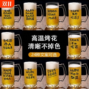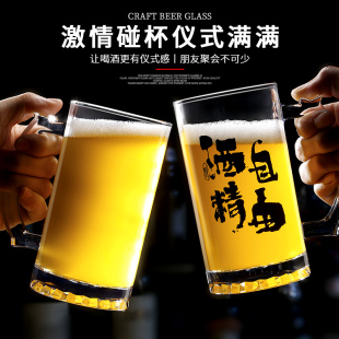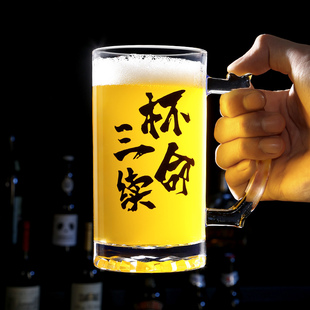 商用大容量啤酒杯扎啤杯500ml网红文案杯精酿啤酒创意个性 带把