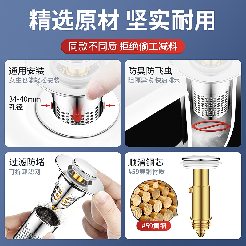 洗手盆漏水塞按压式 防臭子弹水过滤网防堵洗碗池洗菜台盆跳芯通用