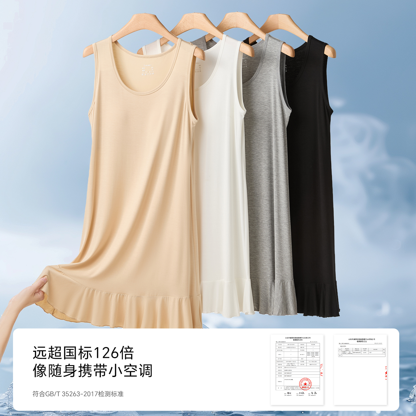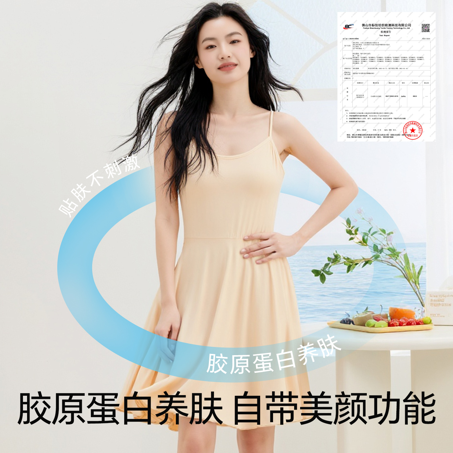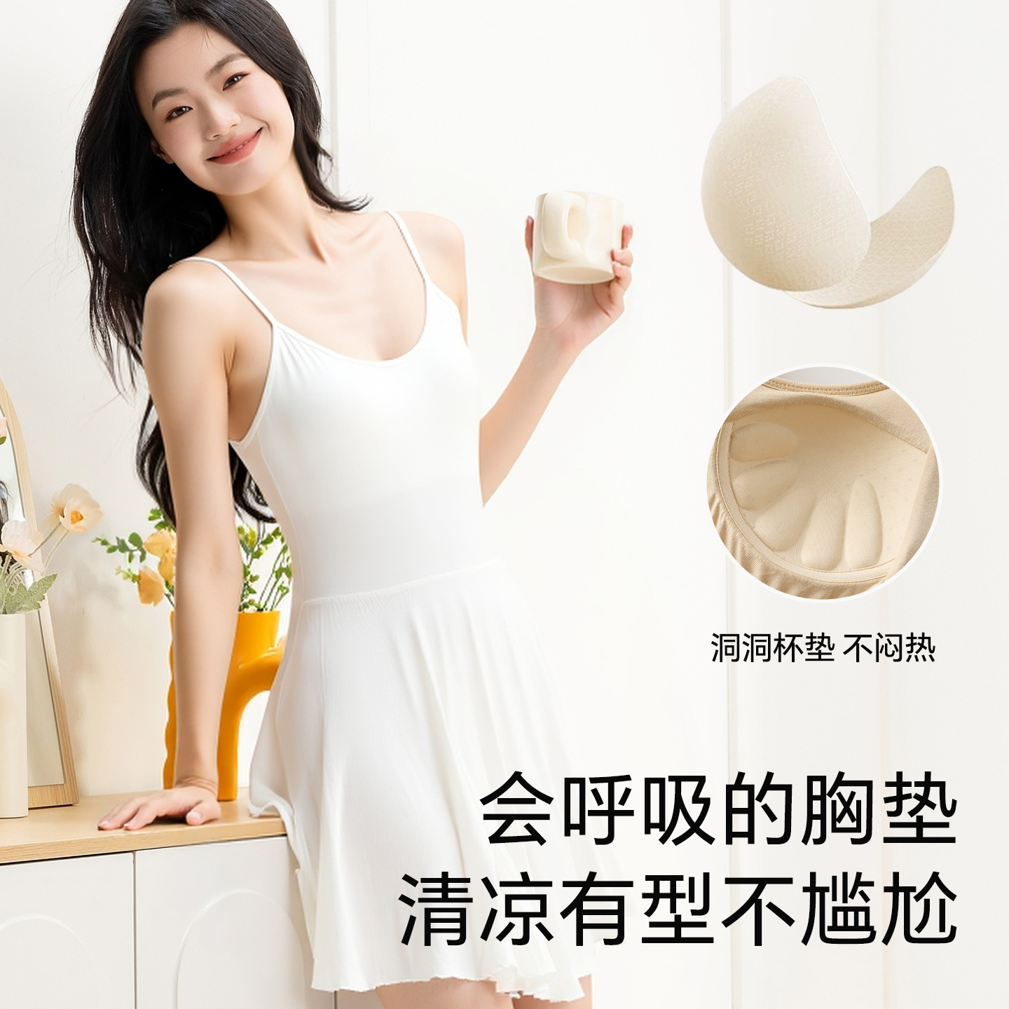 莫代尔睡裙女夏带胸垫一体式 高级感可外穿白色吊带连衣裙睡衣 薄款