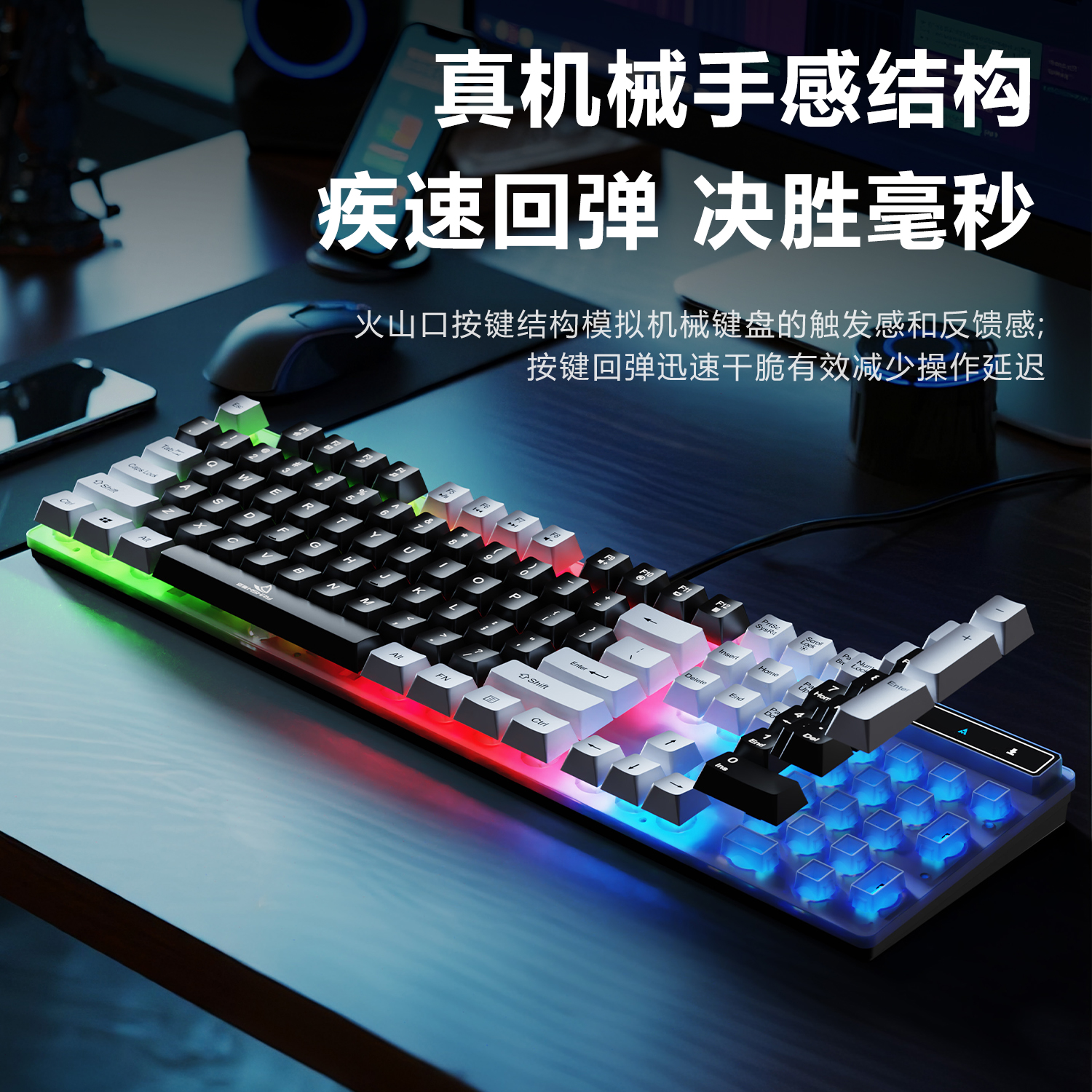 前行者静音键盘真机械手感女生办公专用有线无线游戏电脑鼠标套装