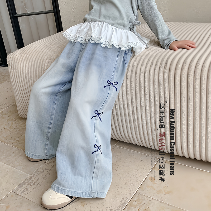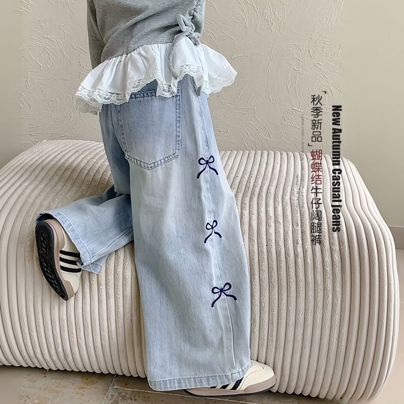 秋装 直筒裤 2025新款 女孩春秋款 儿童洋气时髦宽松阔腿裤 女童牛仔裤