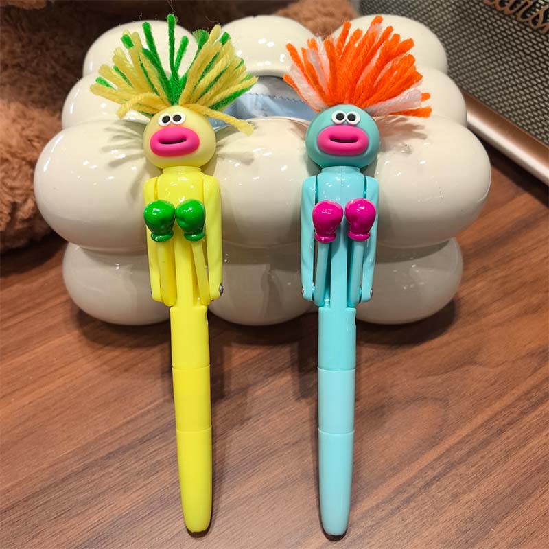炸毛人拳击笔创意减压笔卡通圆珠笔学生高颜值中性笔可爱玩具礼物大嘴趣味儿童粉色整蛊搞笑发泄送开学