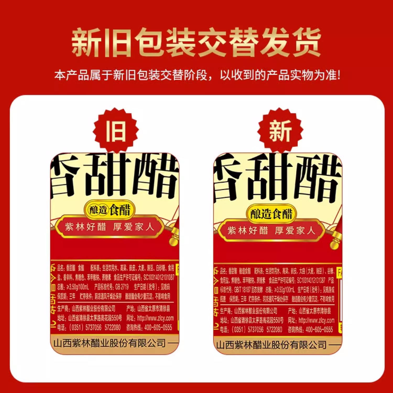紫林香甜醋2L山西正宗老陈醋2000ml粮食酿造甜醋家用食用醋4斤品