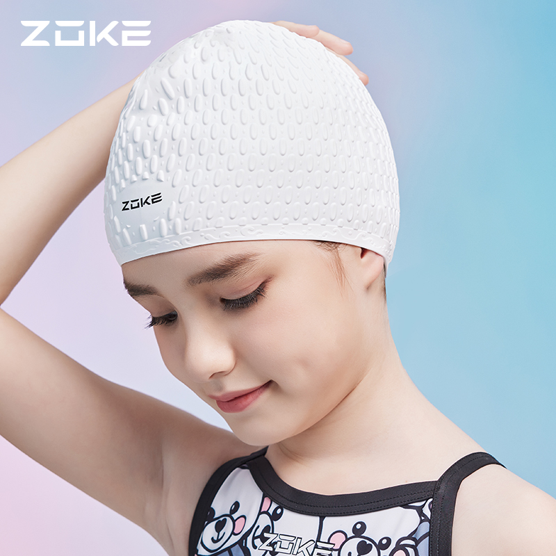 洲克儿童泳帽女童防水护耳长发防滑泡泡帽硅胶女孩水滴帽泳帽泳衣