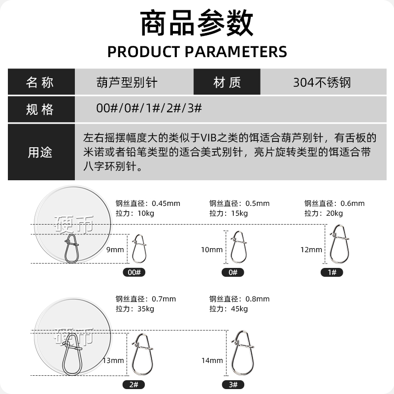 路亚葫芦别针加强连接器微物假饵增强型快速别扣葫芦形加粗导线扣