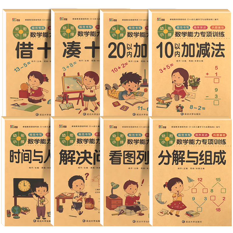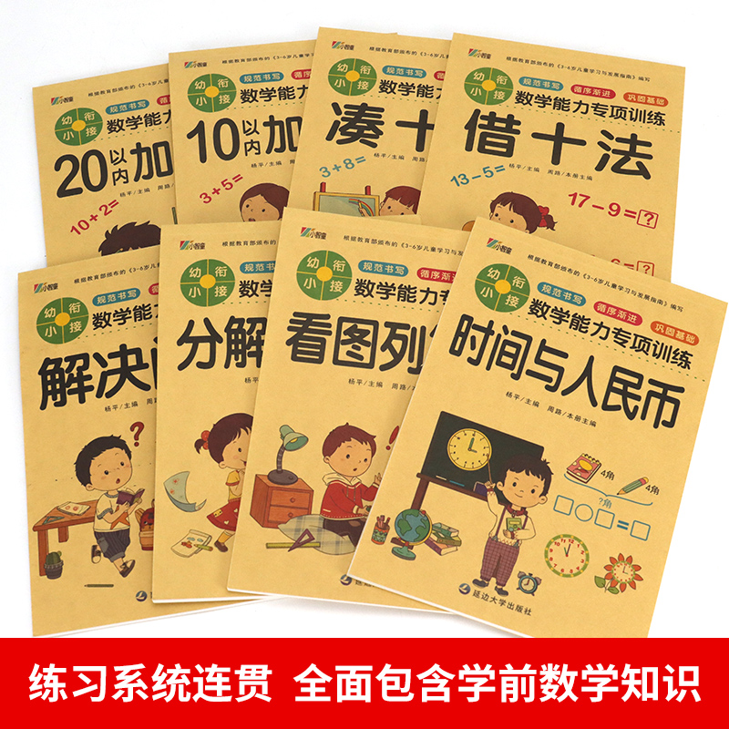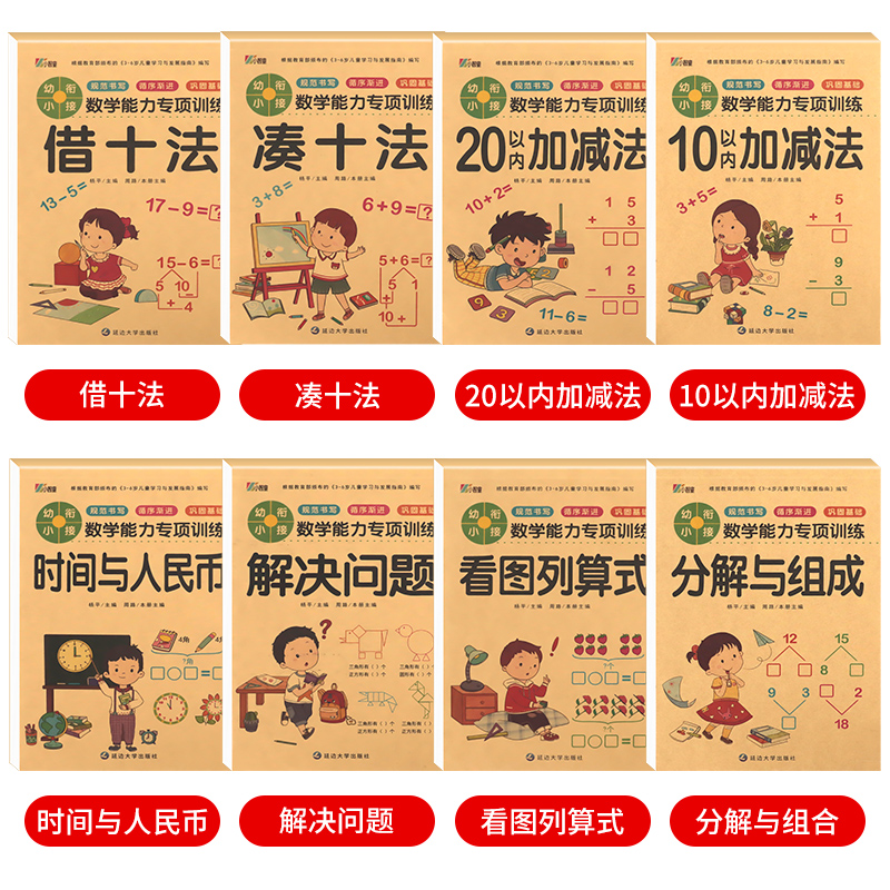 全套8册 幼儿园大班学前班升一年级 凑十法借十法幼小衔接一日一练数学能力训练启蒙教材加减法天天练习册时间与人民币看图列算式