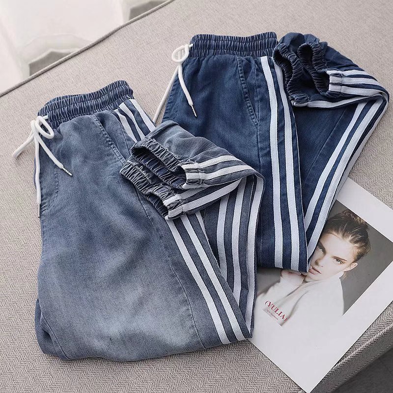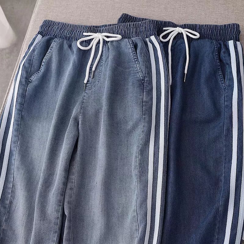 女冰丝垂顺束脚宽松休闲裤 高腰天丝牛仔裤 清凉九分裤 夏季 潮 女薄款