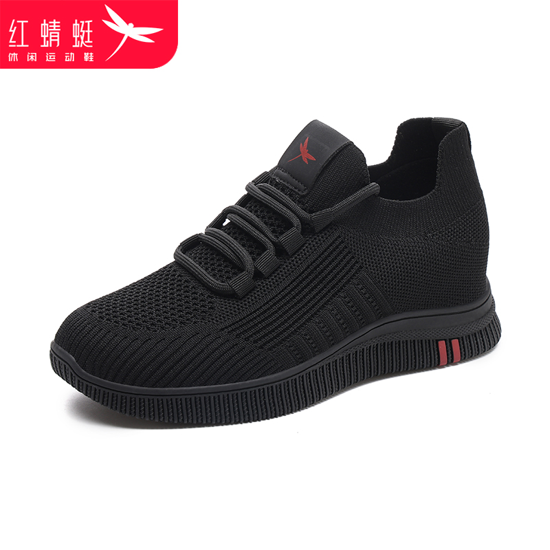 子飞织网面内增高运动鞋 红蜻蜓女鞋 鞋 新款 女透气妈妈增高 2025夏季