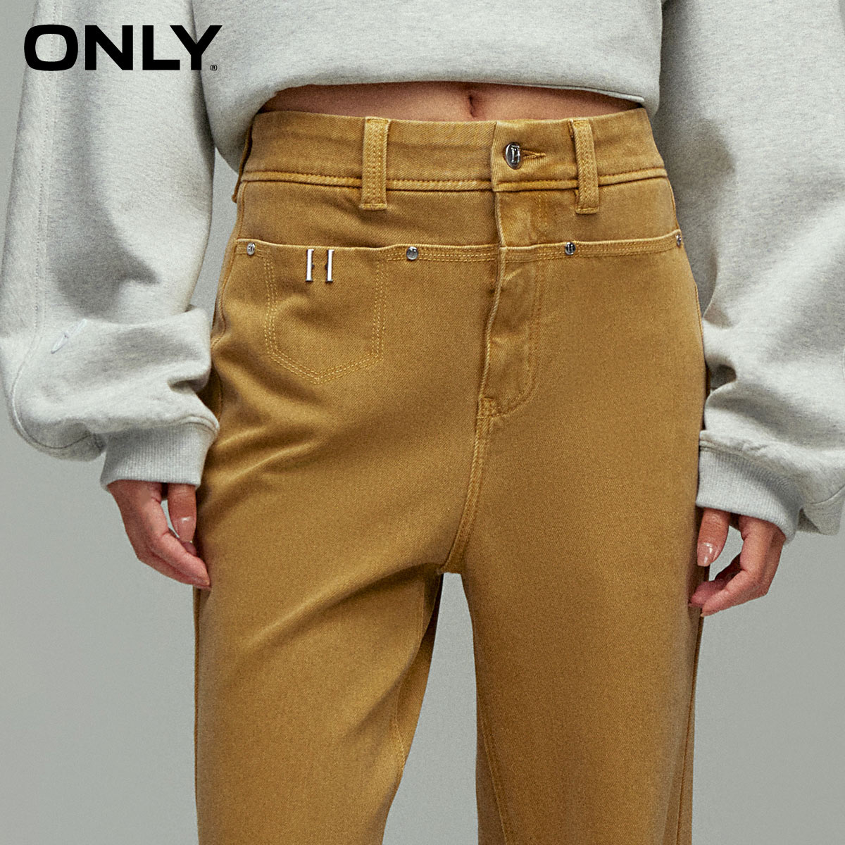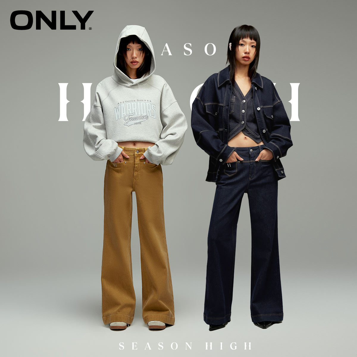 女 宽松复古磨白猫须中腰休闲弯刀香蕉阔腿牛仔裤 ONLY2025冬季 新款