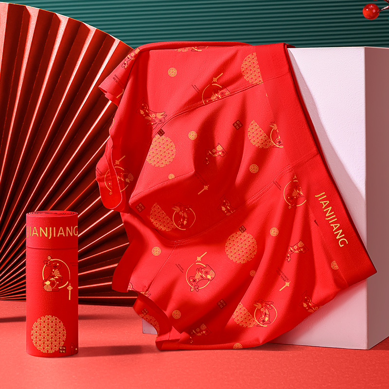蛇年结婚礼物无痕莫代尔纯棉抗菌平角短裤 健将男士 本命年红色内裤