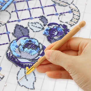 反绣反面亮片钩针墩绣实木串珠反向法式 勾针珠绣刺绣钩花