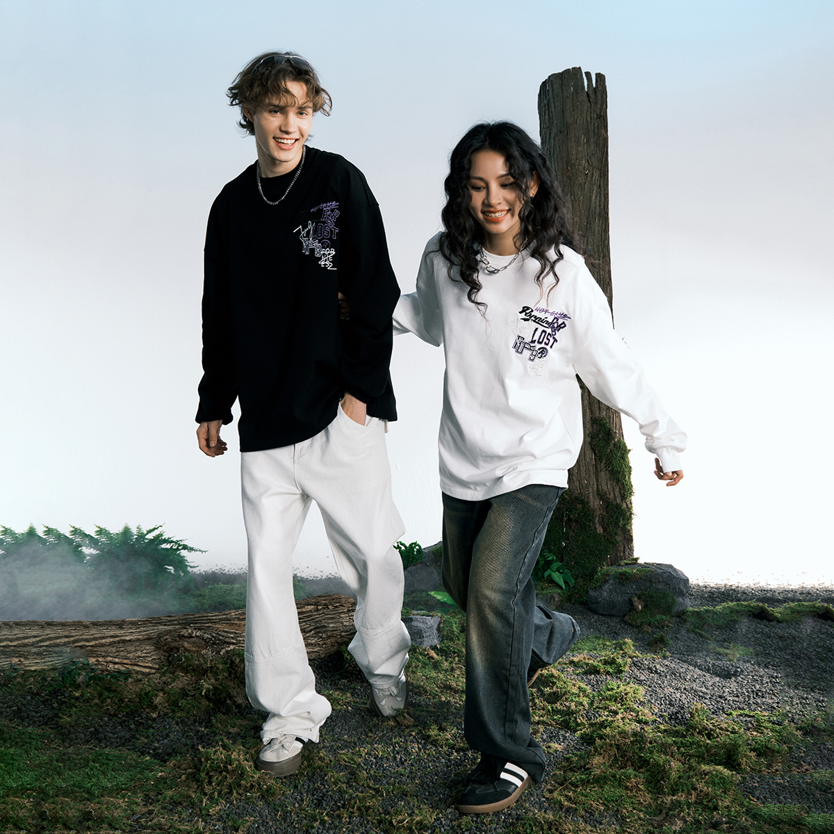 T恤男女情侣潮牌上衣春秋打底衫 蒲熠星同款 FORNINES刺绣重磅长袖