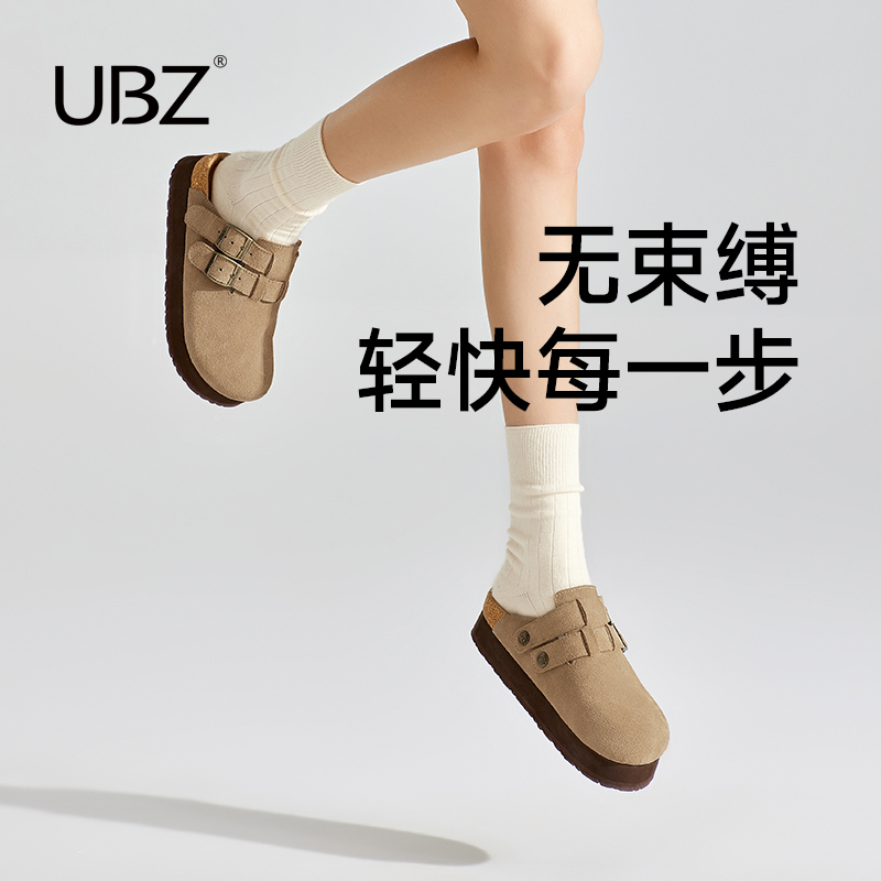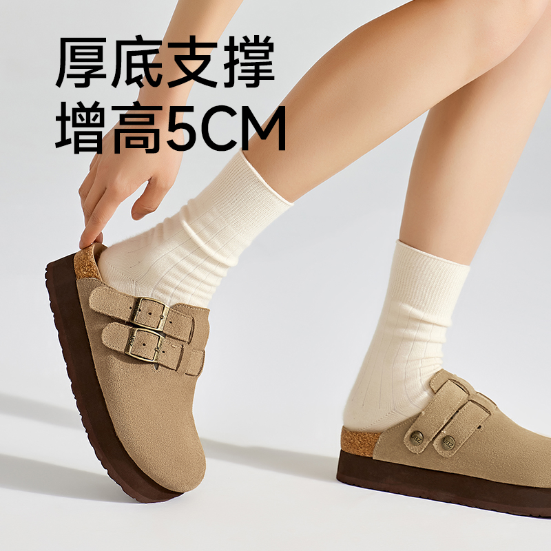 软木博肯半拖 女外穿2025年春秋牛皮时尚 UBZ 防水增高厚底勃肯拖鞋