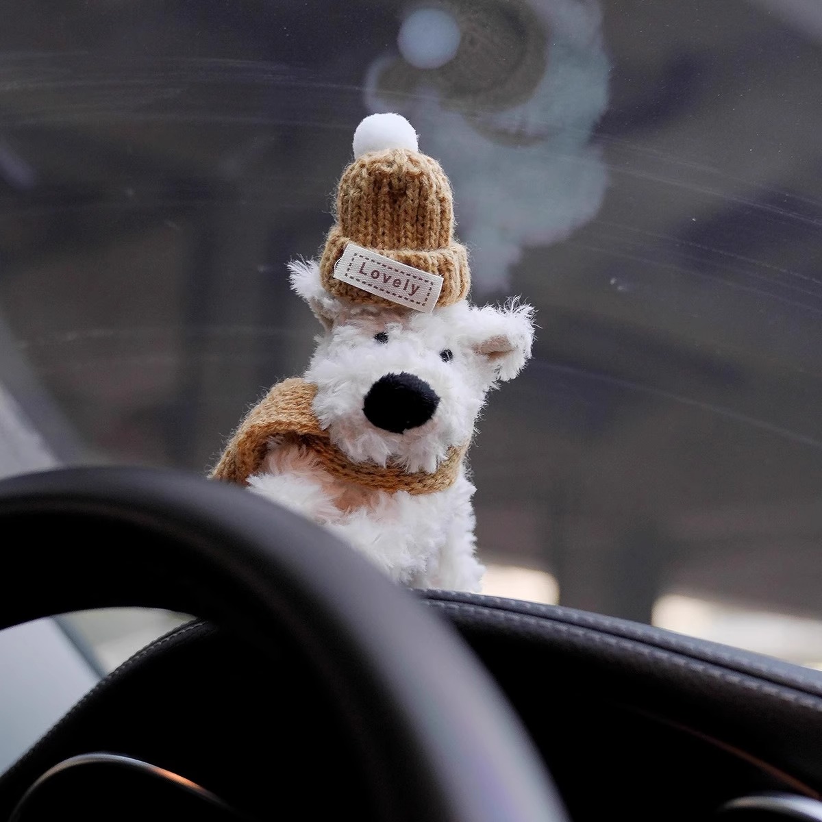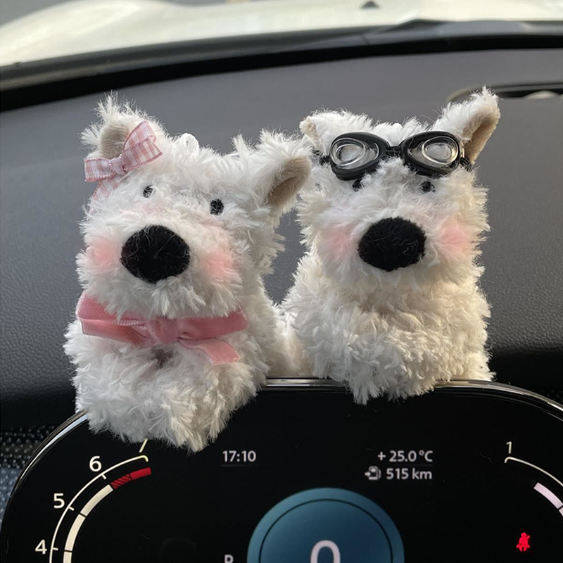 汽车中控屏幕摆件西高地车载可爱狗狗毛绒玩偶公仔女生车用装 饰品