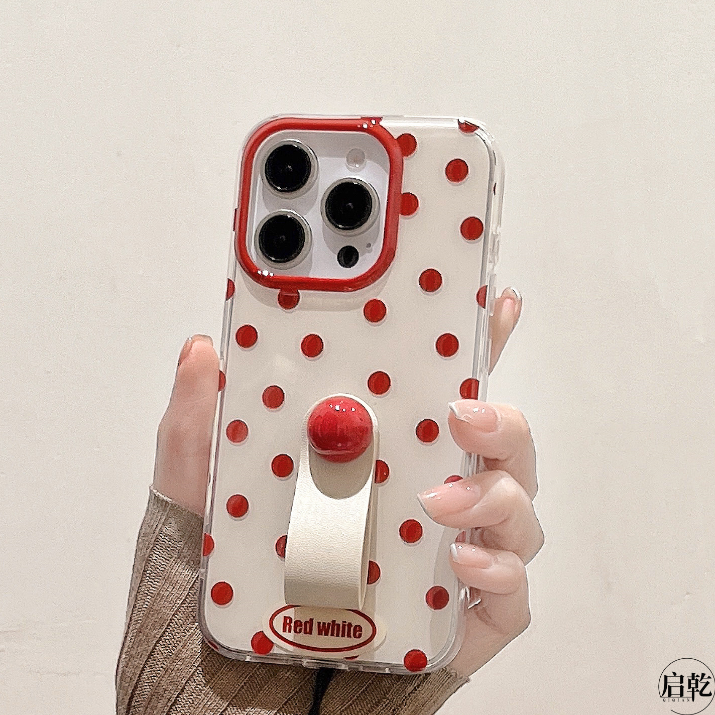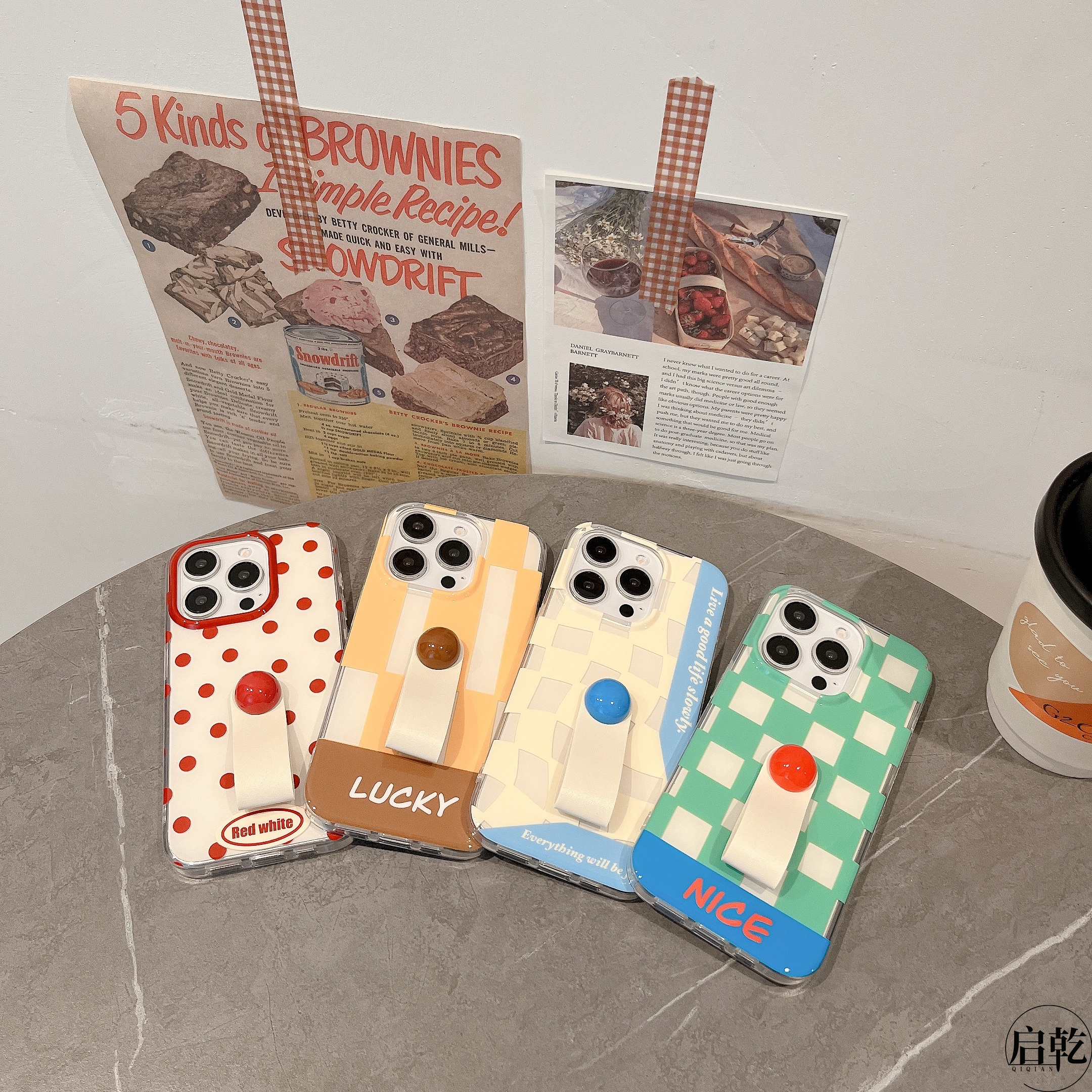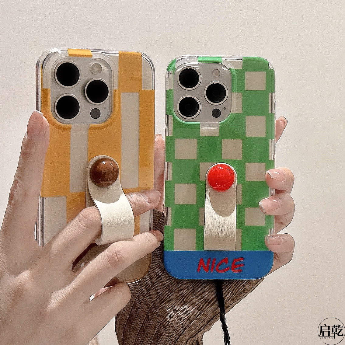 13promax硬壳12双层11高级感小众新款 启乾 15手机壳适用苹果14 情侣防摔 韩风拼接格纹波点指环扣iPhone17
