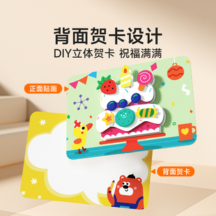时光学立体贴贴画手工diy益智立体粘贴画趣味3D操作简单原创款 萌趣设计幼儿园益智玩具男女孩无需剪刀立体反复粘贴
