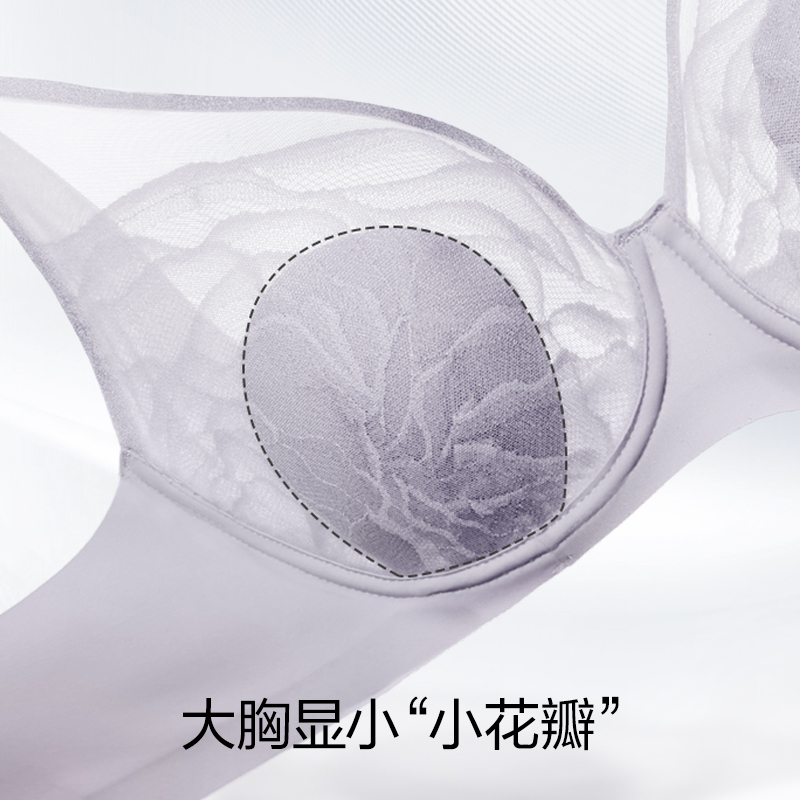 显瘦蕾丝薄款 遐大胸显小全罩杯文胸微聚拢大码 内衣女 倾城之恋