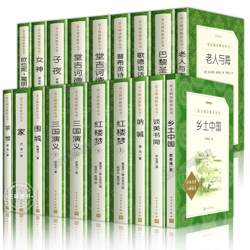 书目 乡土中国红楼梦老人与海谈美书简三国演义茶馆围城家呐喊女神子夜高一二三上下册高中生名著经典 全套16本 高中课外阅读书籍必