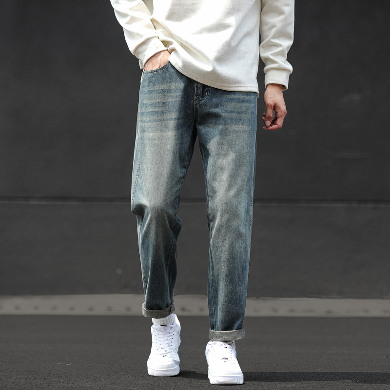 宽松阔腿裤 V37美式 高街vibe水洗直筒长裤 男秋季 子 复古做旧牛仔裤