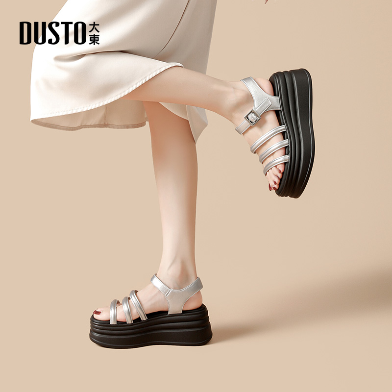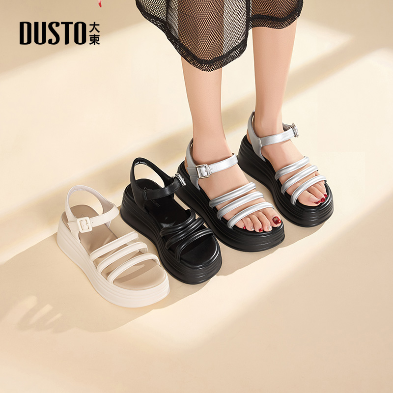 时尚 大东绑带凉鞋 新款 2025夏季 休闲外穿坡跟高跟增高一字扣女 女鞋