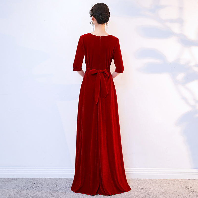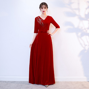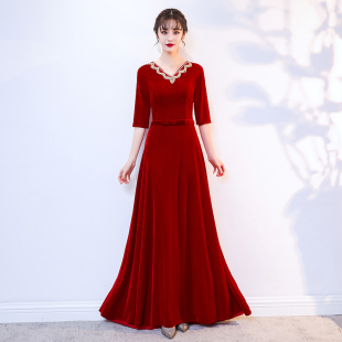 创意狐宴会礼服裙女长款 婚礼婚宴妈妈礼服改良旗袍连衣裙婆婆晚装