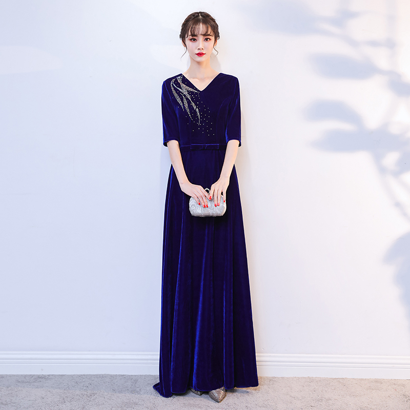 刺绣庆典主持模特团队走秀大合唱舞台演出服 中国风式 长款 礼服晚装