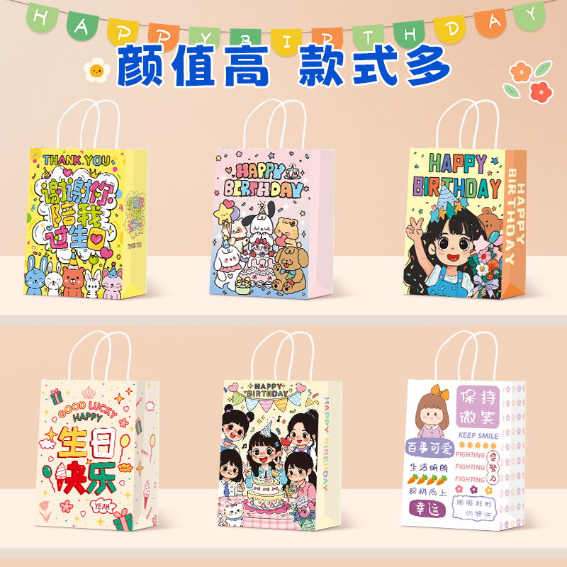 儿童礼品袋六一幼儿园糖果包装 手提礼物牛皮纸袋谢谢你陪我过生日