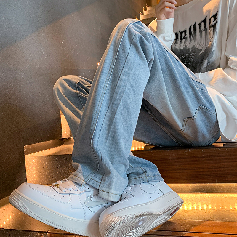 男修身 夏薄款 痞帅vibe风裤 潮牌长裤 显瘦 子美式 高街水洗微喇牛仔裤