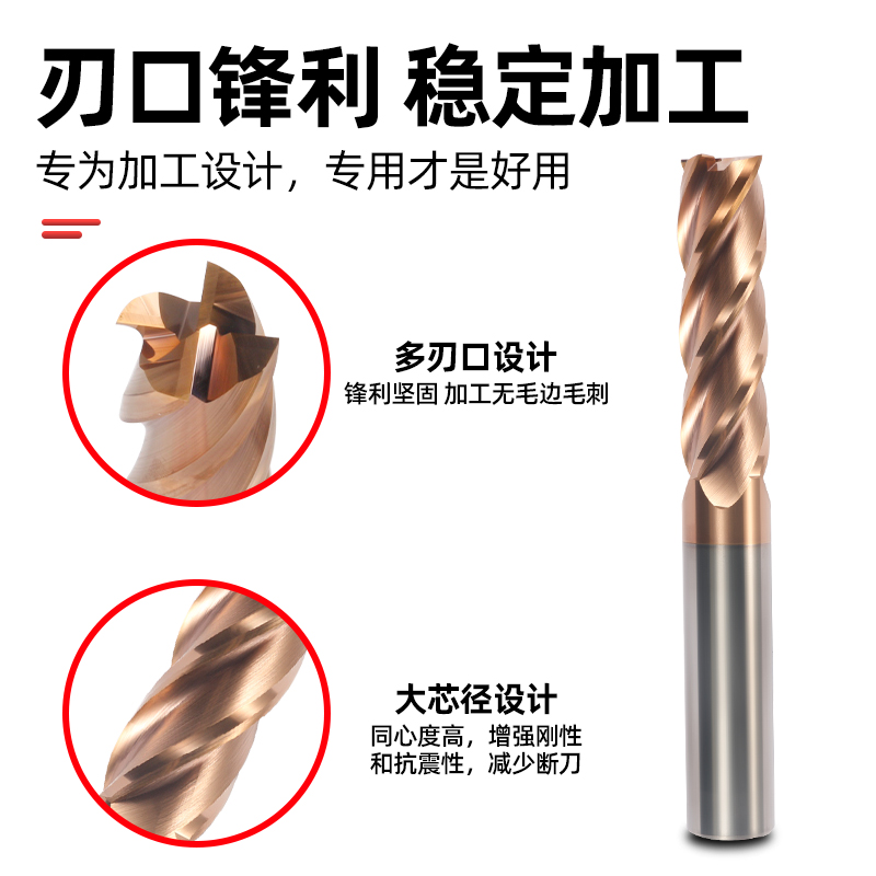 60度4刃钨钢铣刀硬质合金平底立铣刀CNC加工中心2刃钢用数控刀具