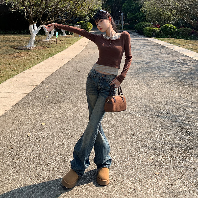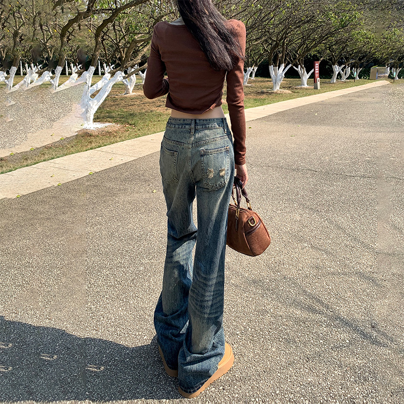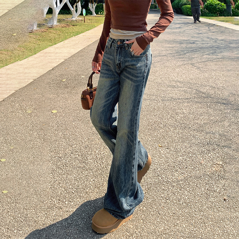 显瘦宽喇叭牛仔长裤 热风女士微喇牛仔裤 复古修身 新款 2025年秋季