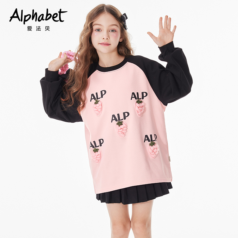 T恤衫 长袖 小女孩立体草莓上衣 女童卫衣套头中大儿童装 2025春秋款