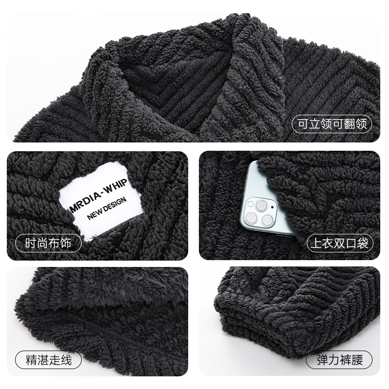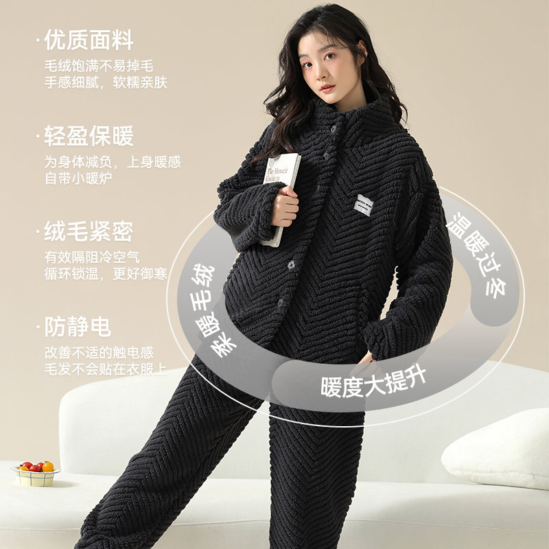 猫人珊瑚绒情侣睡衣男冬季 加厚保暖法兰绒冬天简约外穿家居服女款