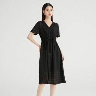 歌莉娅提花连衣裙女2025新款 通勤穿搭重要场合高级感针织裙子 夏季