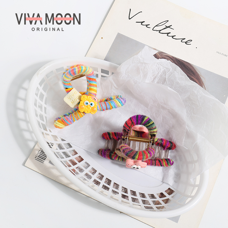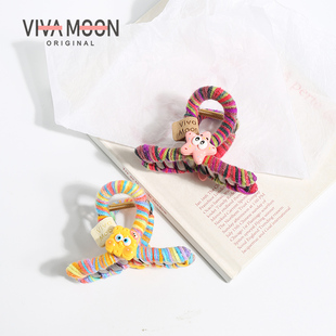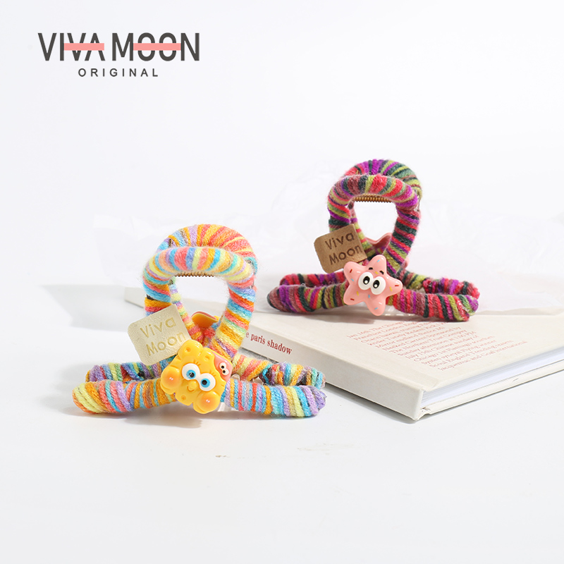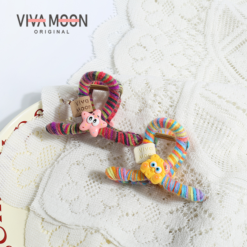 海绵宝宝高级感高马尾丸子头抓夹秋冬新款 毛绒毛线彩色鲨鱼夹发夹