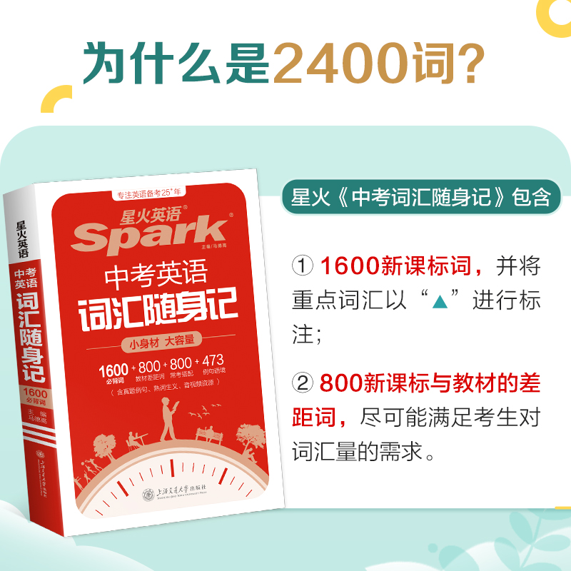 星火英语中考英语词汇初中英语词汇口袋书单词随身记背书初中词汇中考必背英语单词本1600大纲全高频核心词汇人教版 小本必背手册