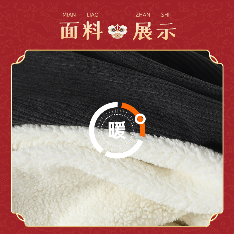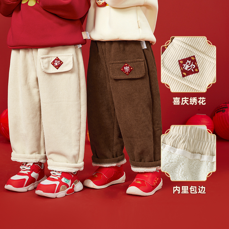 秋冬女童宝宝棉裤 冬装 加绒加厚长裤 咔咔熊猫男童婴儿拜年服新年款