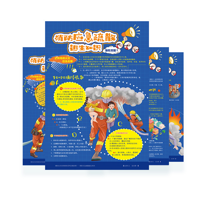 纸彩色印刷2025年全国安全生产法宣传周招贴画安全生产月壁报海报挂图BAT2303 套铜版 包发票 消防应急疏散逃生知识宣教挂图4张