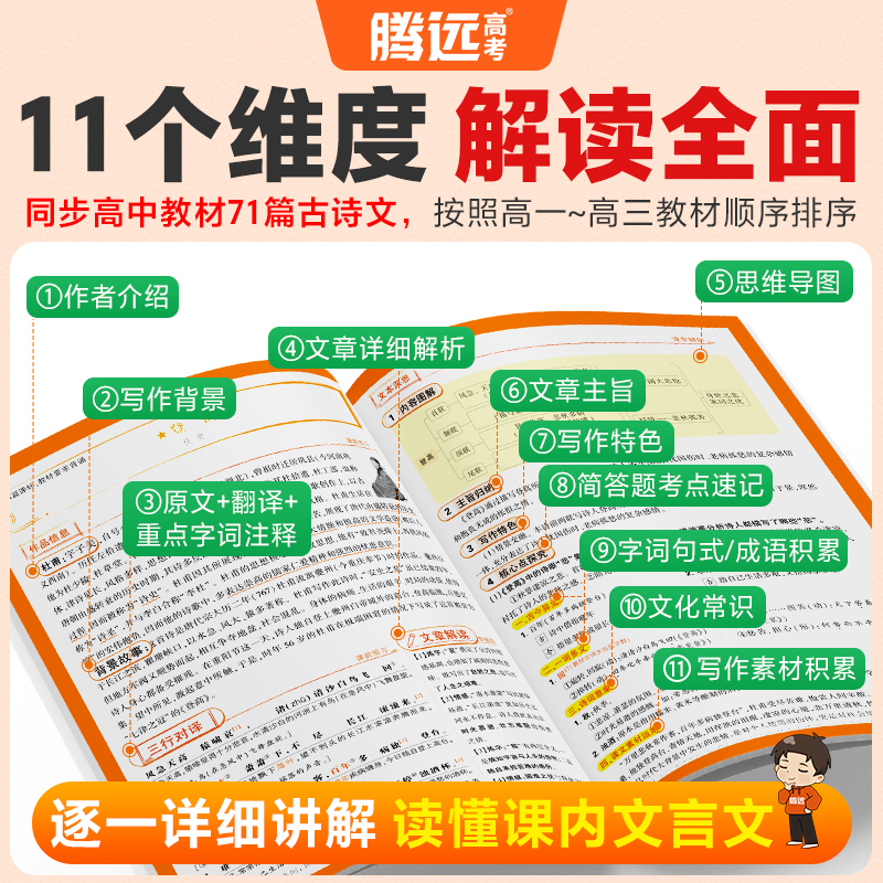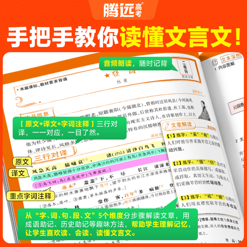 2026腾远高考高中文言文完全解读全一册必修选修高中古诗文72篇理解性默写万唯文言文译注赏析高一二高三文言文阅读专题训练练习册