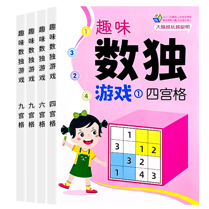 儿童入门阶梯训练小学生 趣味数独游戏 四宫格 六宫格 逻辑思维训练题集题本练习青少年填字游戏书智力开发益智书籍 九宫格 4本